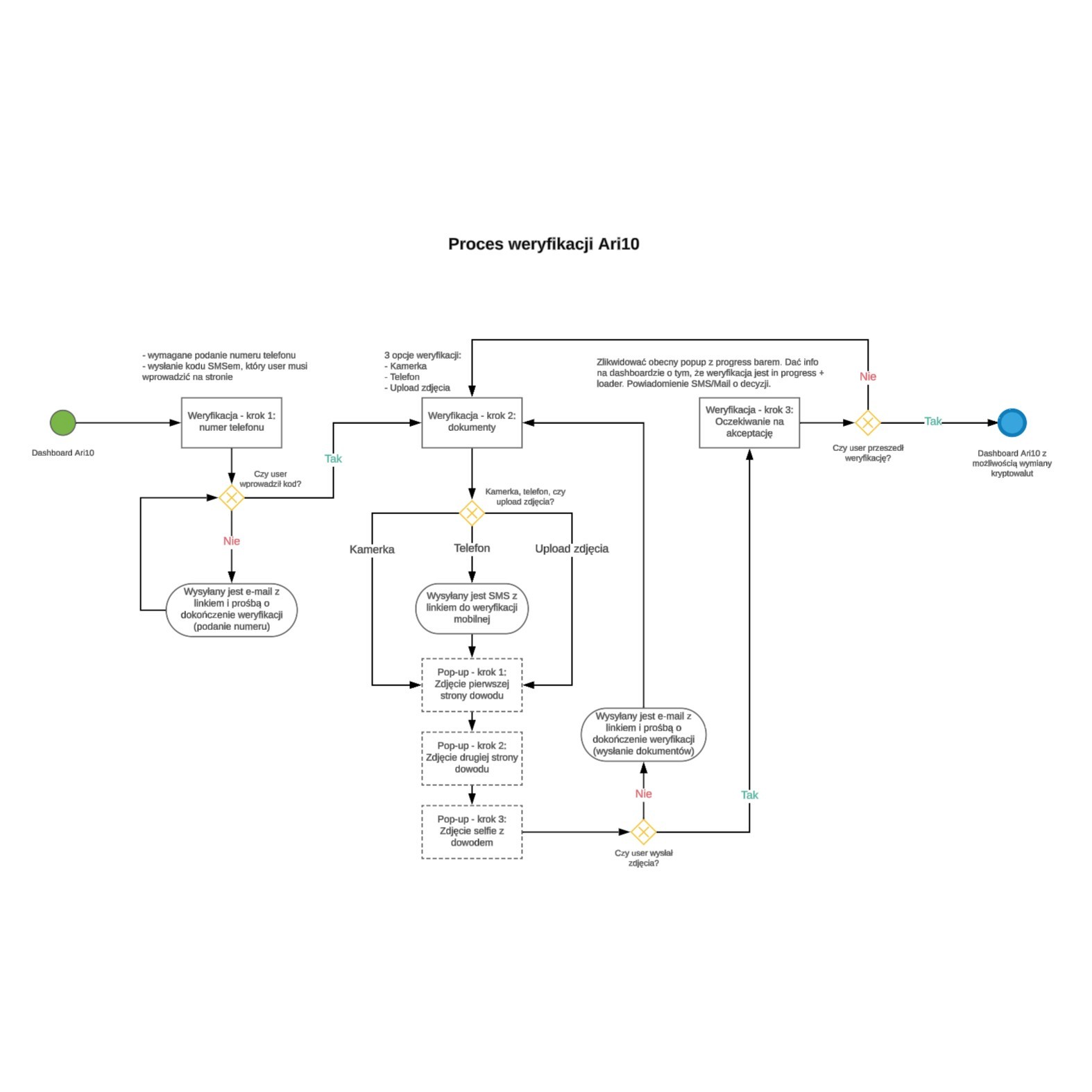 Projekt dotyczył optymalizacji kluczowych ścieżek zakupowych oraz procesów rejestracji i weryfikacji użytkowników w platformie Bitcan (obecnie Ari10) - jednej z największych platform do zakupu kryptowalut w Polsce. Głównym celem było uproszczenie procesu wejścia użytkownika w produkt oraz zwiększenie konwersji w krytycznych momentach: zakupie, rejestracji i weryfikacji tożsamości (KYC). Projekt obejmował analizę istniejących flow, identyfikację punktów drop-off oraz zaprojektowanie nowych ścieżek dopasowanych do różnych typów użytkowników i poziomu zaawansowania. Kluczowym wyzwaniem było pogodzenie wymogów regulacyjnych (KYC/AML) z potrzebą maksymalnego uproszczenia doświadczenia użytkownika i skrócenia czasu do pierwszego zakupu.
