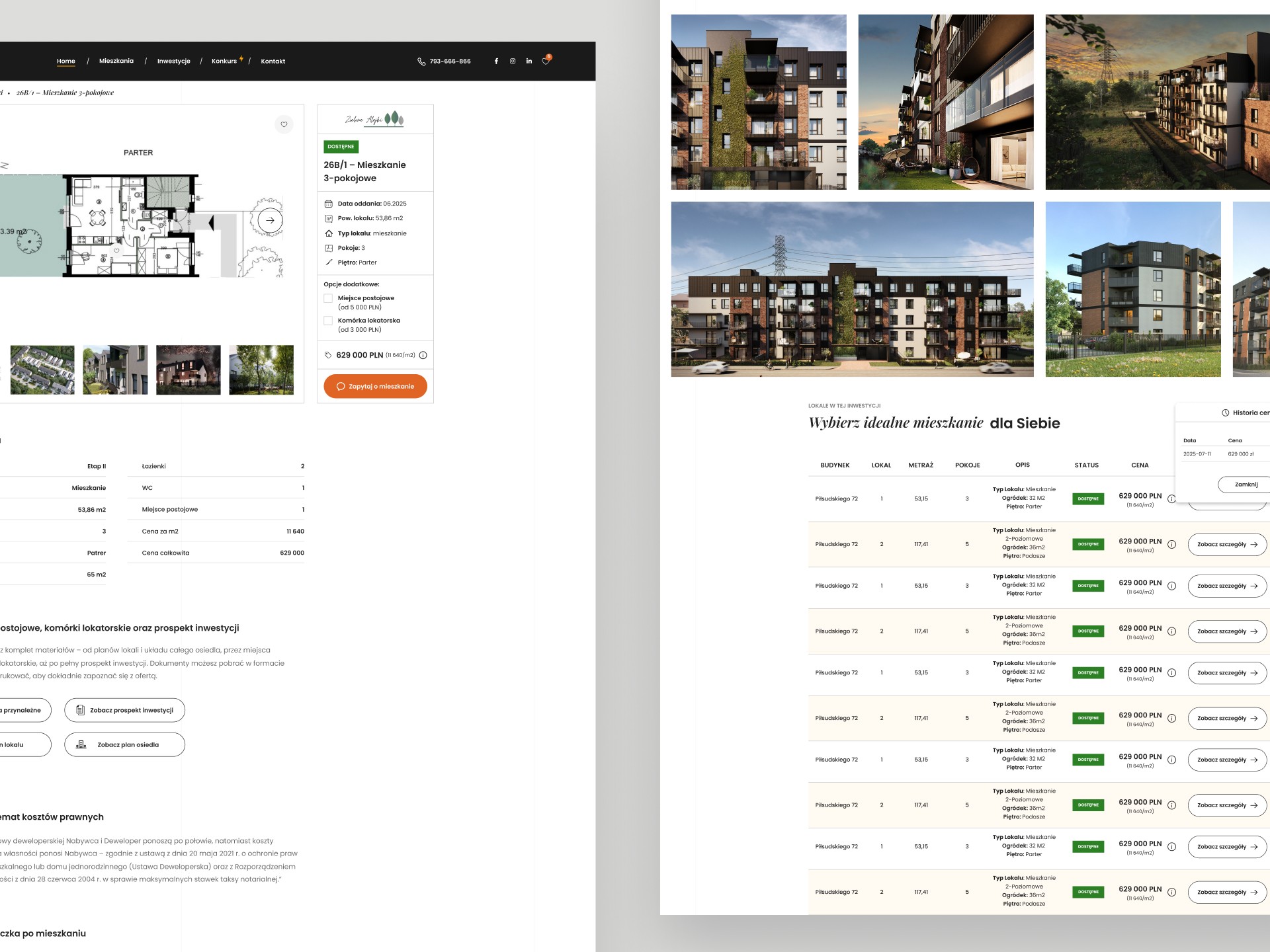 Analiza potrzeb użytkowników i identyfikacja głównych barier w procesie wyboru mieszkania: • Przeprojektowanie architektury informacji serwisu i uproszczenie struktury oferty • Projektowanie ścieżek użytkownika (user flows) prowadzących do konwersji • Tworzenie makiet i projektów UX/UI dla nowej strony inwestycji • Optymalizacja kluczowych punktów styku (lista mieszkań, karta lokalu, formularze kontaktowe) • Współpraca z zespołem developerskim przy wdrożeniu rozwiązań • Dbanie o spójność doświadczenia użytkownika na wszystkich etapach lejka • Iteracyjne usprawnianie projektu na podstawie obserwacji i danych